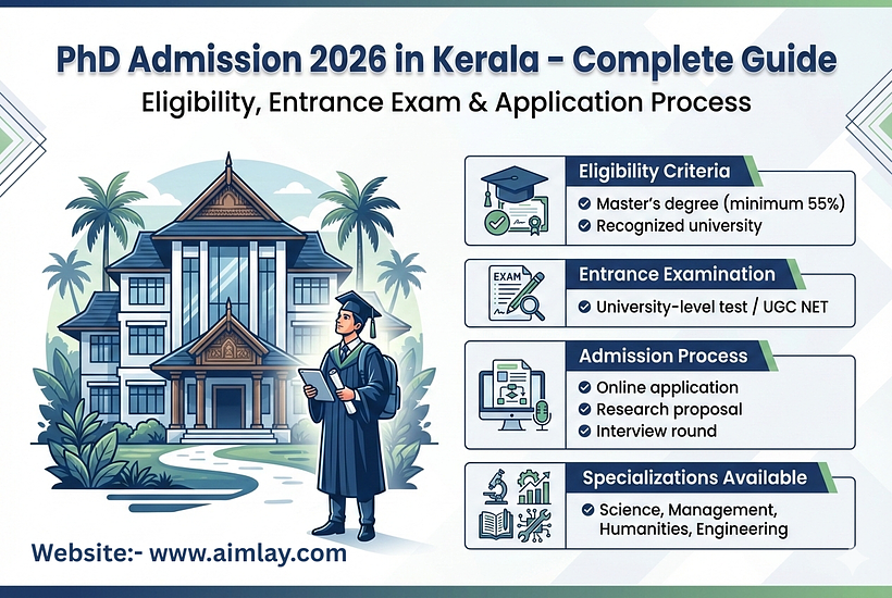 PhD Admission 2026 in Kerala offers research opportunities across leading state and private universities. Candidates must meet eligibility criteria, qualify entrance exams, and complete the interview process. Explore detailed information on specializations, admission procedure, required documents, important dates, and doctoral research opportunities available in Kerala for the 2026 academic session.