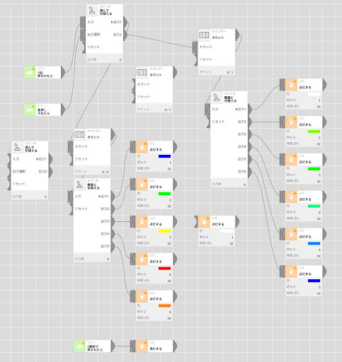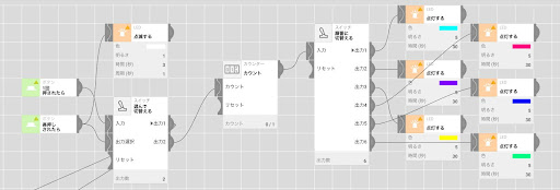 変更点: ・出力1でのLEDライトの色を、青色→オレンジ色 だったのを、ネガティブ→ポ ジティブを演出するために、ボタンを一回押すたびに光の強さが大きくなり、 色を青色→赤色 に変わるようにした ・出力2でのLEDライトの色を、白色→青色 だったのを、「小さな挑戦」を提案 する際十人十色の意見がでるため、カラフルな色にした