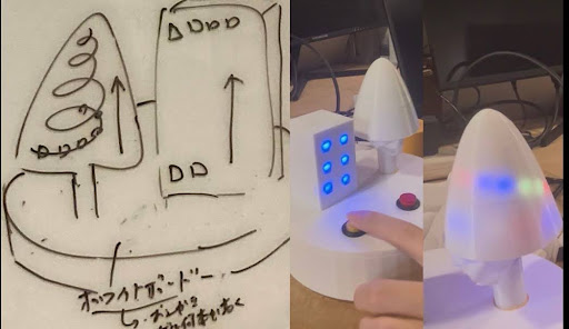 - 1、初回はルール理解が不十分でテンポが乱れたが、2回目は慣れによりテンポの良いチョウテン会を実現できた。2、現行機能の「光の強さの変化」は、使用するMESHの性能上差が分かりにくいため、ホメる際にボタンを3回押すごとに寒色から暖色へ色を変化させ、ネガティブからポジティブへの心情変化を表現する仕様に変更した。また、「チョウテン会のサポート役」としての機能は果たしている一方で、本製品がなくても進行できるという指摘を受け、新たな付加価値として、ファシリテータを支援する進行用の音声機能を追加した。