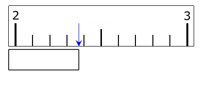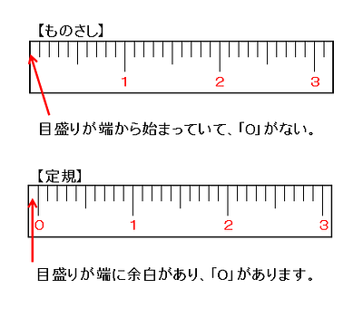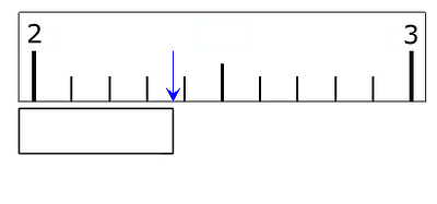 測り方0 最小目盛りが1mmの物差しので長さを測るなら、0.1mmまで目測で読み取る。 例えば、右の画像の場合1目盛り1mmとすると、下の四角い物体は23mmまでは確実に物体として存在しているのが読み取れる。しかし、物体としてはそれよりも長く、24mmまでにはとどかない範囲で存在している。この場合、自分の目測で曖昧な数値として0.8mmを足して23.8mm(青矢印の位置)と読むのが正規の値となる。詳しくは有効数字で調べてもらいたい。 ※実際に扱う時は1mm単位で読んで問題はない。 Add Annotation Order