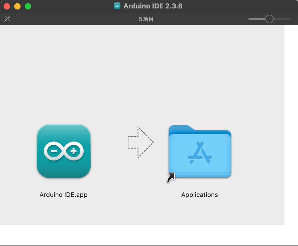 - ダウンロードしたファイルをダブルクリックします。Macの場合、左のアイコンを右のフォルダの上にドラッグするとインストール出来ます。