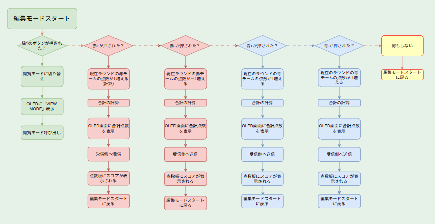 - 赤チームと青チームの点数を数える。