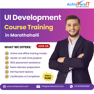 With AchieversIT's UI development course in bangalore, you will be able to master the concepts such as CSS3, CSS, HTML, JavaScript, Bootstrap, HTML5, JQuery, Angular/ReactiS etc.We will give traini...